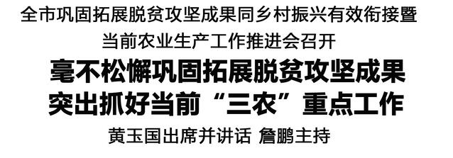本報(bào)訊(記者 王艷) 11月10日,全市鞏固拓展脫貧攻堅(jiān)成果同鄉(xiāng)村振興有效銜接暨當(dāng)前農(nóng)業(yè)生產(chǎn)工作推進(jìn)會召開,對鞏固拓展脫貧攻堅(jiān)成果、抓好當(dāng)前農(nóng)業(yè)生產(chǎn)工作進(jìn)行再動員再部署。市委書記黃玉國出席并講話。市長詹鵬主持。