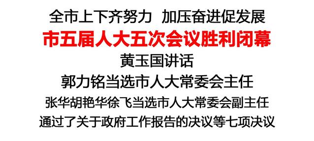 根據(jù)選舉結(jié)果,郭力銘當選周口市第五屆人民代表大會常務(wù)委員會主任,張華、胡艷華、徐飛當選周口市第五屆人民代表大會常務(wù)委員會副主任,胡東河當選周口市第五屆人民代表大會常務(wù)委員會秘書長,王軍、郝強、段然、賈衛(wèi)東當選周口市第五屆人民代表大會常務(wù)委員會委員。