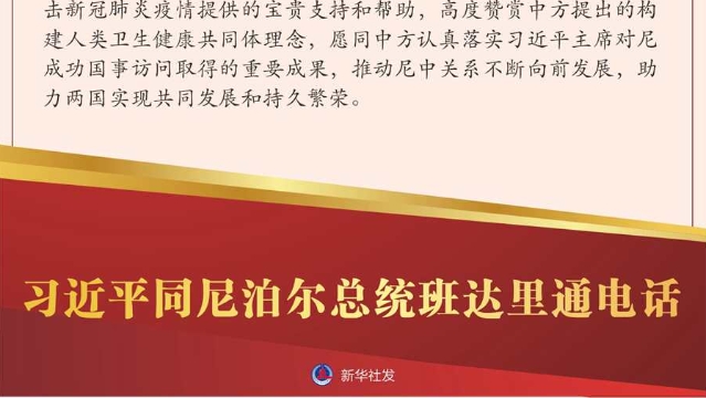習(xí)近平指出,新冠肺炎疫情發(fā)生后,中尼兩國堅定支持彼此抗疫努力,深入開展抗疫合作,彰顯了守望相助、同舟共濟(jì)的精神。
