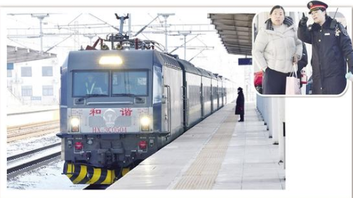 1月22日12時(shí)許,上海至周口的列車緩緩進(jìn)站(大圖)。乘客下車后在工作人員的引導(dǎo)下出站(小圖)。
