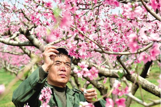 3 月 25 日上午,川匯區(qū)園藝中心內,數百畝桃樹進入盛花期,果農搶抓農時開展桃花人工授粉作業(yè)。