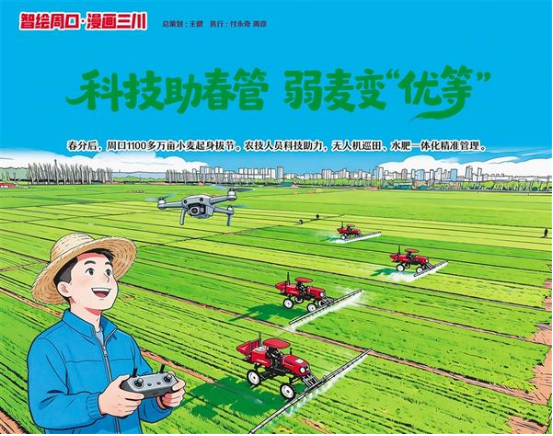 春分后,周口1100多萬畝小麥進入起身拔節(jié)期,農技人員依托科技開展精準春管。