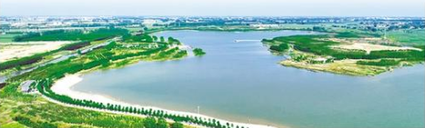近日,天氣晴好,引黃調(diào)蓄湖波光粼粼,倒映著藍(lán)天白云,景致如詩如畫。