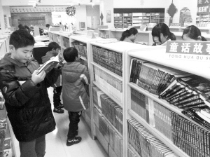 昨日,在市新華書店多個圖書展區(qū)前,許多小讀者正在埋頭看書。春節(jié)期間,不少市民選擇到書店看書買書,在享受文化的同時(shí),也給自己“充電”,讓喜慶的節(jié)日平添了幾分書卷氣。 (記者 侯俊豫 攝)