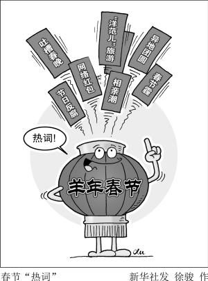 剛剛過去的羊年春節(jié)喜氣洋洋,看點多多:延續(xù)反腐高壓態(tài)勢,反腐相聲上了春晚,反腐動漫短片受熱捧,請客送禮的少了,清風(fēng)正氣得到弘揚;從“小眾試水”到“全民狂歡”,網(wǎng)絡(luò)紅包成為羊年春節(jié)的“標(biāo)簽”,為傳統(tǒng)年俗注入新活力;在這個春節(jié),人們還發(fā)現(xiàn),異地團圓多了,旅游“爆棚”了,霧霾“爆表”了……