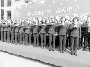 3月21日,淮陽一高舉行 “高考百日沖刺”誓師大會(huì)。校長王業(yè)生及高一、高二、高三年級(jí)全體師生參加了會(huì)議。青年教師代表付士翔、家長代表張鳳啟及學(xué)生代表分別進(jìn)行了充滿激情的發(fā)言。在距2015年高考還有100天的日子里,師生莊嚴(yán)宣誓:“以頑強(qiáng)的意志、百倍的激情、無窮的潛力,以最刻苦的精神、最堅(jiān)韌的毅力,全力以赴,奮勇爭先,爭分奪秒,苦戰(zhàn)百日,決戰(zhàn)高考,誓創(chuàng)輝煌?!?豆紀(jì)鋒 攝)