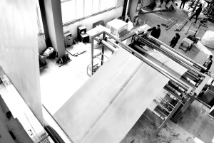 淮陽縣銀豐塑料有限公司流水生產(chǎn)線一瞥。該公司擁有大中型吹塑膜機組40多臺、制袋生產(chǎn)線6條,并擁有完備的塑料制品化驗檢測設(shè)備。生產(chǎn)的農(nóng)用塑料膜等產(chǎn)品暢銷蘇、魯、豫、皖等地,遠銷美國、韓國等國家。(記者 沈湛 攝)