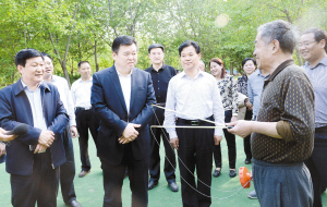 徐光一行又先后深入開發(fā)區(qū)人民廣場(chǎng)、星龍華緣健身場(chǎng)所、融輝城健身活動(dòng)中心、商水縣夕陽(yáng)紅健身園、周口市體育中心等地實(shí)地察看各項(xiàng)體育健身運(yùn)動(dòng)設(shè)施建設(shè)進(jìn)展情況,聽取籌備工作情況匯報(bào),了解場(chǎng)館布展和開幕式準(zhǔn)備情況。看到一件件嶄新的健身運(yùn)動(dòng)器材、一塊塊新近完善提升的健身場(chǎng)地,特別是正在進(jìn)行健身運(yùn)動(dòng)群眾的一張張笑臉,徐光滿意地點(diǎn)點(diǎn)頭,并來到市民中間,與大家親切交談,和正在健身的市民打乒乓球、試用健身器材,共同分享健身帶來的樂趣。徐光說,我市作為省十二屆“老健會(huì)”的承辦方,在時(shí)間緊、任務(wù)重、標(biāo)準(zhǔn)高、壓力大的情況下,各相關(guān)單位按照市委、市政府的安排部署,講政治、顧大局、做貢獻(xiàn),做了大量卓有成效的工作,可以說我市的全民健身場(chǎng)所功能得到了完善、形象得到了提升,市民參與健身活動(dòng)的途徑和選擇更加方便多樣,參與健身的熱情更加高漲,市委對(duì)大家的工作是滿意的。但是,我們還要看到,我市的全民健身工作與群眾的需求還存在一定差距,必須進(jìn)一步加大投入力度,建設(shè)好、管理好、使用好相關(guān)體育健身設(shè)施,使之能夠更好地滿足群眾健身需求,服務(wù)百姓生活。