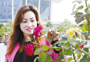 一名與會者流連于盆景花卉展。