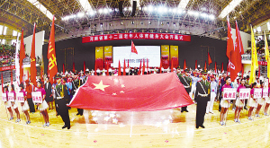 省第十二屆老年人體育健身大會開幕現(xiàn)場。