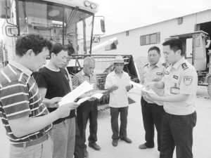 昨日,商水縣舒莊鄉(xiāng)派出所民警正在杜店村遠(yuǎn)豐農(nóng)機專業(yè)合作社向農(nóng)機手宣傳“三夏”生產(chǎn)安全知識。為確?!叭摹鄙a(chǎn)安全,舒莊鄉(xiāng)派出所印發(fā)2000份《三夏安全生產(chǎn)知識宣傳單》,組織民警深入田間地頭和農(nóng)家小院向農(nóng)機手們面對面進(jìn)行安全生產(chǎn)宣傳。(喬連軍 攝)