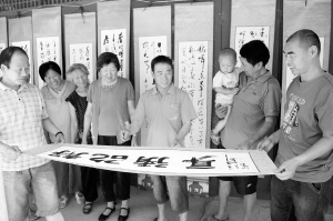 昨日,扶溝縣包屯鎮(zhèn)雁倉村村民在觀看郭合的書法展。據(jù)了解,該村村民郭合癡迷書法,20多年來,他一邊務(wù)農(nóng)一邊堅持練字,把書法當(dāng)成了生活中最大的樂趣。