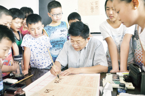 中國書協(xié)會員、市書協(xié)副主席、培訓中心書法主講辛廷信為學生示范。